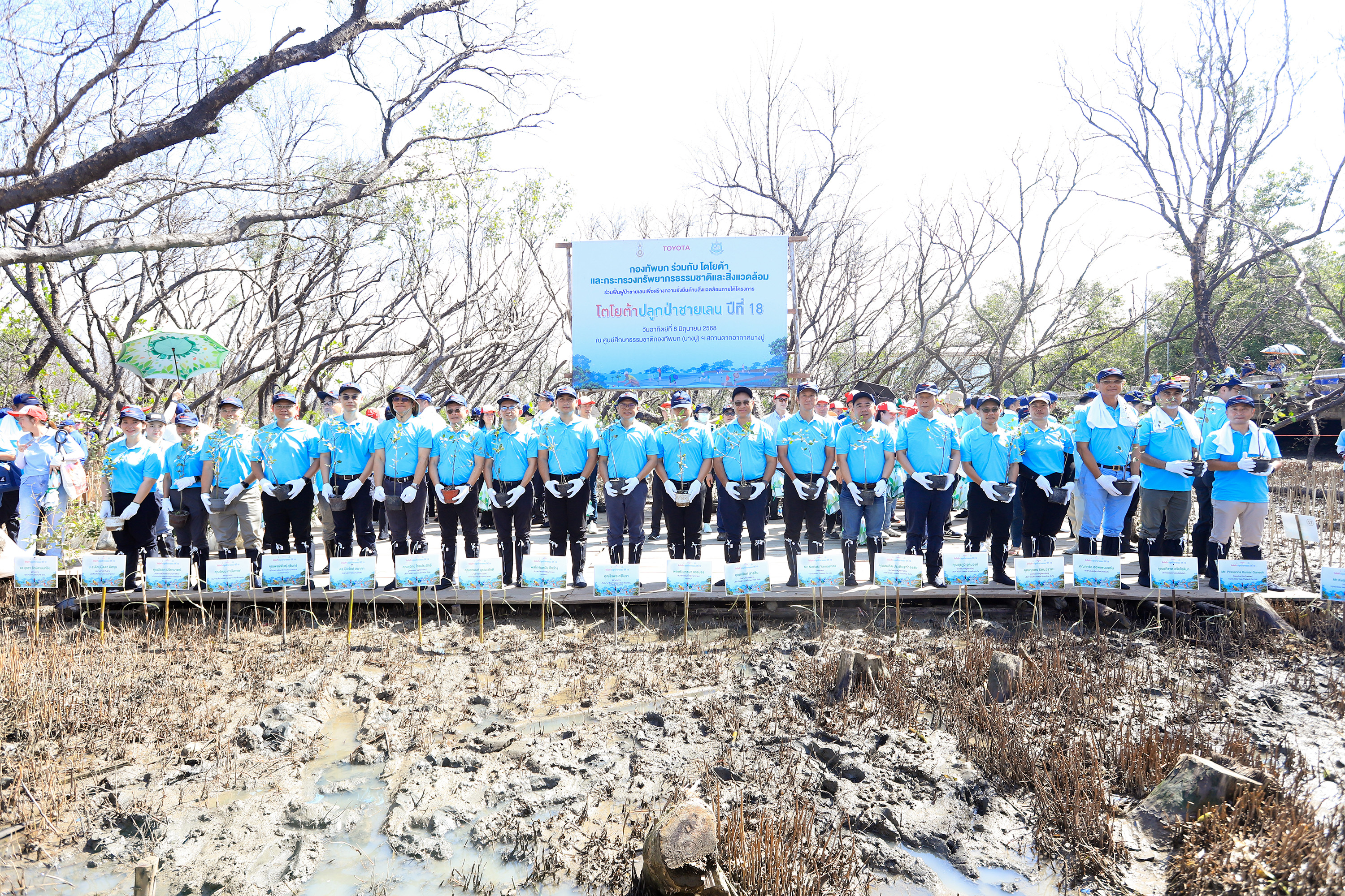 กิจกรรม “โตโยต้า ปลูกป่าชายเลน ครั้งที่ 18” สะท้อนพลังความร่วมมือจากหลากหลายภาคส่วน กว่า 2,000 คน ประกอบด้วย พนักงานโตโยต้าและครอบครัว กลุ่มผู้ผลิตชิ้นส่วน ผู้แทนจำหน่ายโตโยต้า ลูกค้า สมาชิกเครือข่าย Facebook Toyota Happiness Club สมาชิก Toyota Customer Car Club รวมถึงตัวแทนจากหน่วยงานภาครัฐในจังหวัดสมุทรปราการ กองทัพบก และประชาชนทั่วไป ที่มาร่วมกันปลูกพันธุ์ไม้ชายเลนจำนวน 50,000 ต้น ซึ่งตลอดระยะเวลาการดำเนินโครงการ โตโยต้าได้ปลูกป่าชายเลน ในพื้นที่บางปูแล้วกว่า 842,800 ต้น สามารถดูดซับก๊าซคาร์บอนไดออกไซด์ได้กว่า 11,000* ตันต่อปี สะท้อนให้เห็นถึงความมุ่งมั่นในการอนุรักษ์ฟื้นฟูระบบนิเวศอย่างต่อเนื่องและยั่งยืน