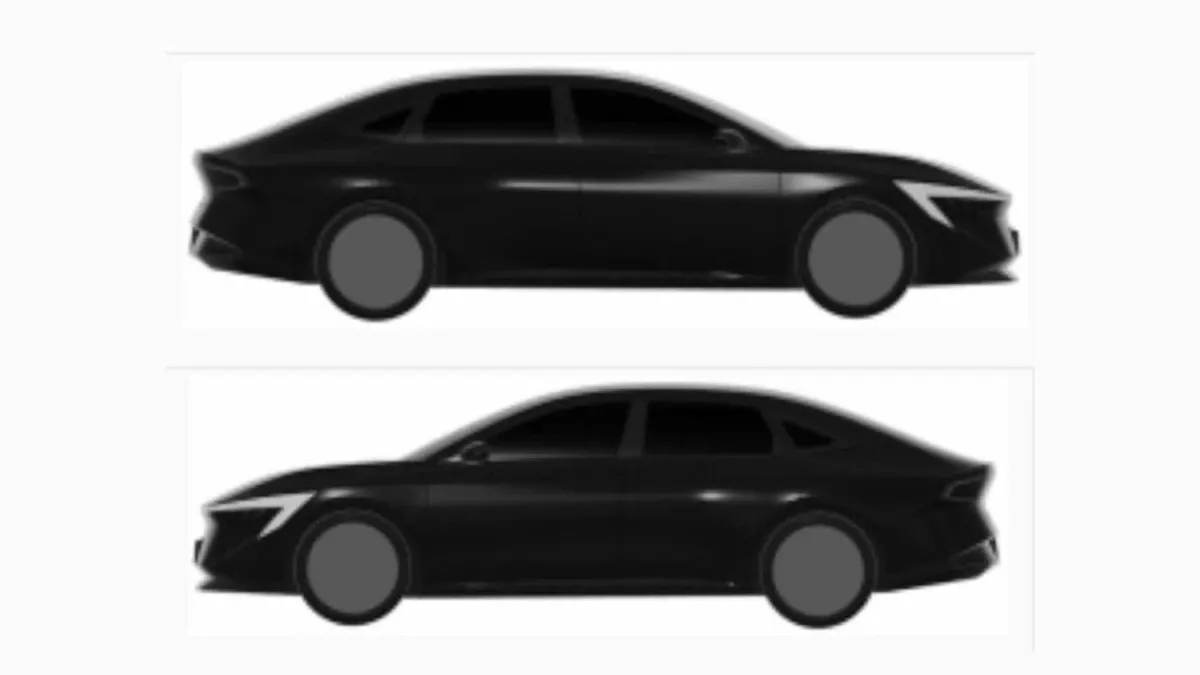 ลองเทียบดีไซน์สิครับ — แนวเส้นหลังคา, เส้นไฟท้าย LED แบบบางเฉียบ, มุมไฟหน้าที่เฉียง ๆ ทั้งหมด ตรงเป๊ะกับ EVO Concept จากจีน ไม่มีผิดเพี้ยน แค่ภาพสิทธิบัตรมันจะดูแปลกตาหน่อยเพราะวาดแบบเน้นเส้นโครง ไม่เน้นอารมณ์