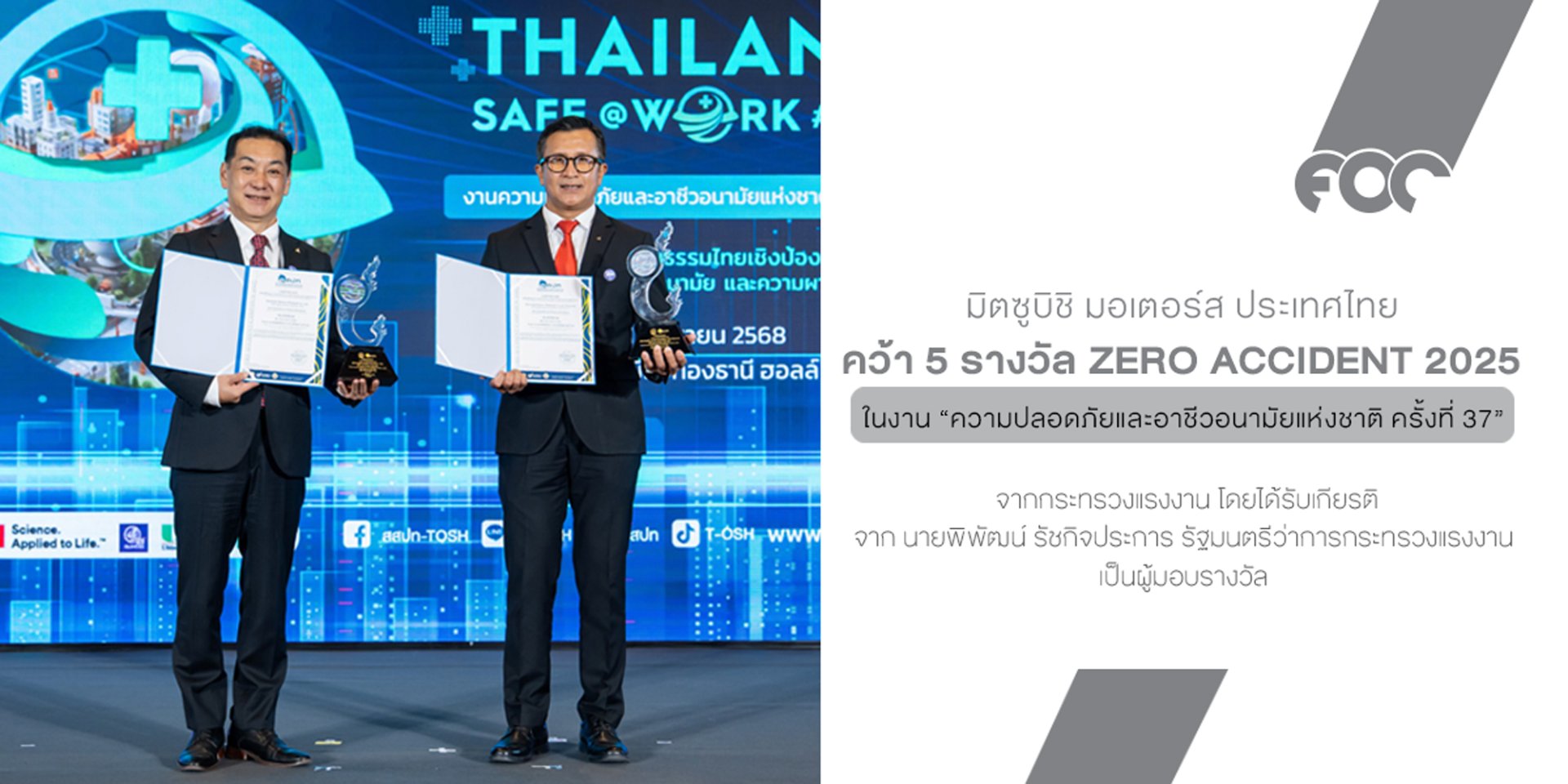 บริษัท มิตซูบิชิ มอเตอร์ส (ประเทศไทย) จำกัด และ บริษัท เอ็มเอ็มทีเอช เอ็นจิ้น จำกัดคว้า 5 รางวัล จากกิจกรรมรณรงค์ลดสถิติอุบัติเหตุจากการทำงานให้เป็นศูนย์ประจำปี 2568 (Zero Accident Campaign 2025) จากสถาบันส่งเสริมความปลอดภัย อาชีวอนามัย และสภาพแวดล้อมในการทำงาน (องค์การมหาชน) ซึ่งจัดขึ้นภายในงานความปลอดภัยและอาชีวอนามัยแห่งชาติ ครั้งที่ 37 โดยโรงงาน 3 ได้รับรางวัลระดับแพลทินัมต่อเนื่องเป็นปีที่ 4 ขณะที่โรงงาน 1 - 2 ได้รับรางวัลระดับแพลทินัมติดต่อกันเป็นปีที่ 2 โรงงานเครื่องยนต์ได้รับรางวัลระดับทอง โรงงานปั๊มขึ้นรูป 2 และพลาสติก ได้รับรางวัลระดับเงิน และโรงงานปั๊มขึ้นรูป 1 ได้รับรางวัลระดับทองแดงตามลำดับ ตอกย้ำความมุ่งมั่นของบริษัทในการยกระดับมาตรฐานความปลอดภัย อาชีวอนามัย และสิ่งแวดล้อมในการทำงานอย่างยั่งยืน