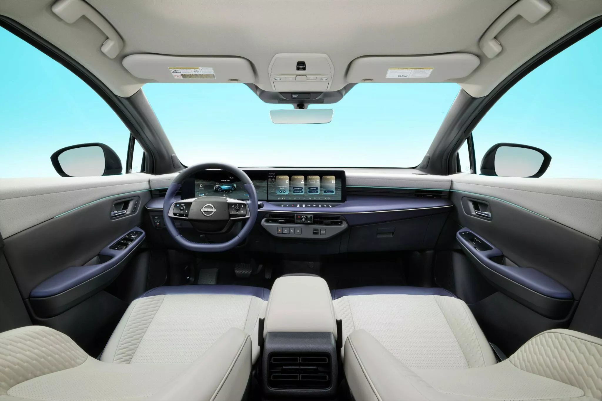ภายในห้องโดยสาร มาในสไตล์ minimalist แบบรถยุคใหม่ ติดตั้งหน้าจอดิจิทัลคู่ขนาด 12.3 นิ้ว หรือ 14.3 นิ้ว ขึ้นอยู่กับตลาดและรุ่นย่อย พร้อมพวงมาลัยสองก้านสุดมินิมอล มีปุ่มแบบสัมผัสเรียงรายบนคอนโซลกลาง และแทนที่คันเกียร์ด้วยปุ่มควบคุมอิเล็กทรอนิกส์ทั้งหมด