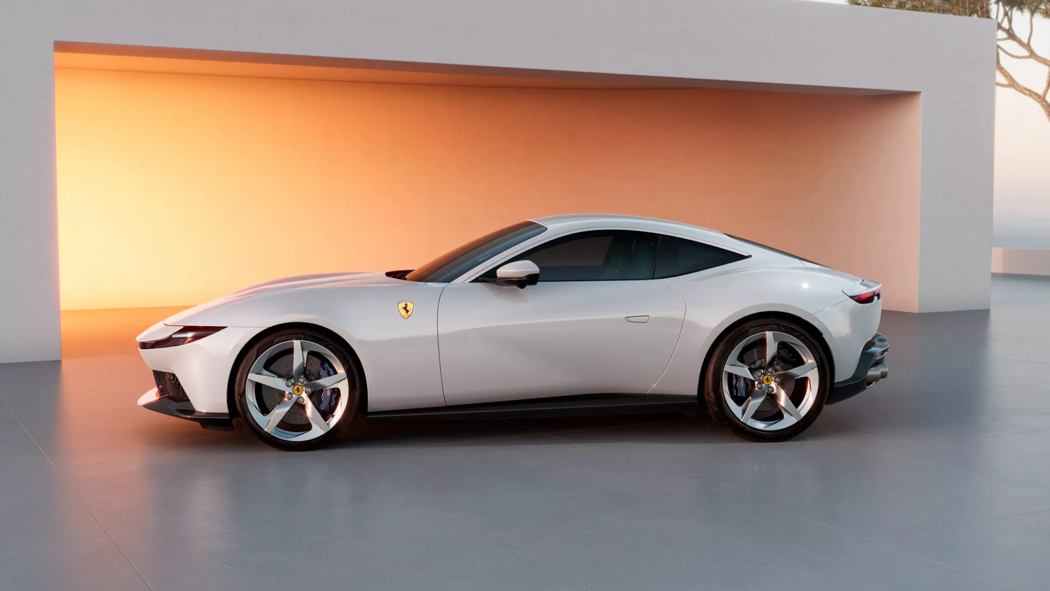 ภายนอกยังคงบุคลิกของ Roma แต่คมขึ้น ดิบขึ้น และล้ำขึ้นแบบพอเหมาะ ตัวรถเน้นความลื่นไหลในเส้นสาย แต่เติมลูกเล่นด้วยแผงหน้าทรงใหม่ที่ตัดกระจังหน้าสไตล์ดั้งเดิมออก แล้วแทนที่ด้วยช่องรับอากาศแนวล่างขนาดใหญ่พร้อมแถบสีดำพาดยาวเชื่อมไฟหน้าเข้าหากัน ดูมีกลิ่นอายของรถต้นแบบ ส่วนด้านข้างแทบจะยกมาจาก Roma ทั้งหมด มีเพียงล้ออัลลอยขนาด 20 นิ้วที่เปลี่ยนลายใหม่ พร้อมยางให้เลือกทั้ง Bridgestone Potenza Sport หรือ Pirelli P Zero ส่วนท้ายรถเน้นความโค้งมน แฝงความบึกบึนขึ้นอีกระดับ ช่องป้ายทะเบียนถูกเลื่อนลงไปใกล้กับดิฟฟิวเซอร์ และเติมช่องระบายอากาศใหม่รวมถึงไฟท้ายดีไซน์เฉพาะรุ่น
