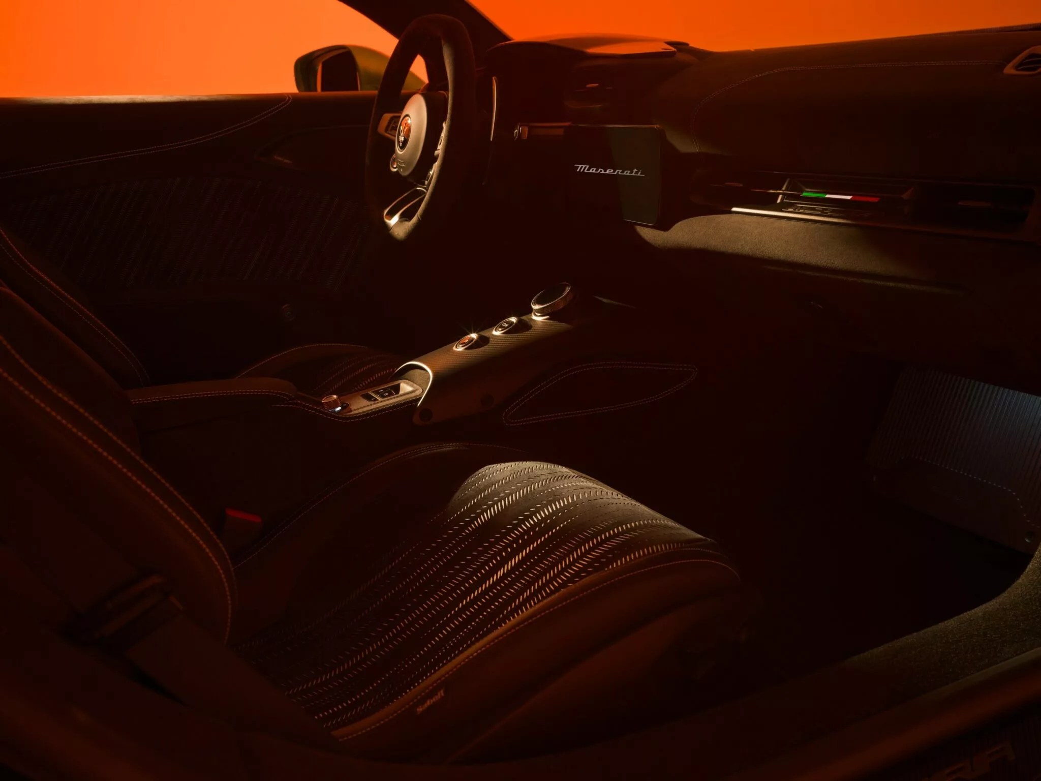 หน้าตาโดยรวมยังคงเป็น MC20 อยู่เต็มเปา แต่พอพินิจให้ลึกจะเริ่มเห็นความต่างชัดขึ้น เริ่มจากกระจังหน้าและแผงสปลิตเตอร์ที่ถูกออกแบบใหม่โดยอิงจากรถแข่ง GT2 ทำให้หน้ารถดูเฉียบ คม และดุดันมากขึ้น ส่วนด้านท้ายก็เปลี่ยนไปไม่น้อย ดิฟฟิวเซอร์หลังโดนขยายให้เน้นมิติมากกว่าเดิม ลากเส้นอากาศให้โอบรัดรอบปลายท่อไอเสียได้เนียนขึ้น แถมสปอยเลอร์ก็ถูกยืดให้มีแรงกดที่ชัดขึ้น แม้ Maserati จะยังไม่เปิดเผยตัวเลขแรงต้านหรือแรงกดอากาศ แต่พวกเขาบอกว่าใช้เวลาเป็นพัน ๆ ชั่วโมงในการทดสอบในอุโมงค์ลม