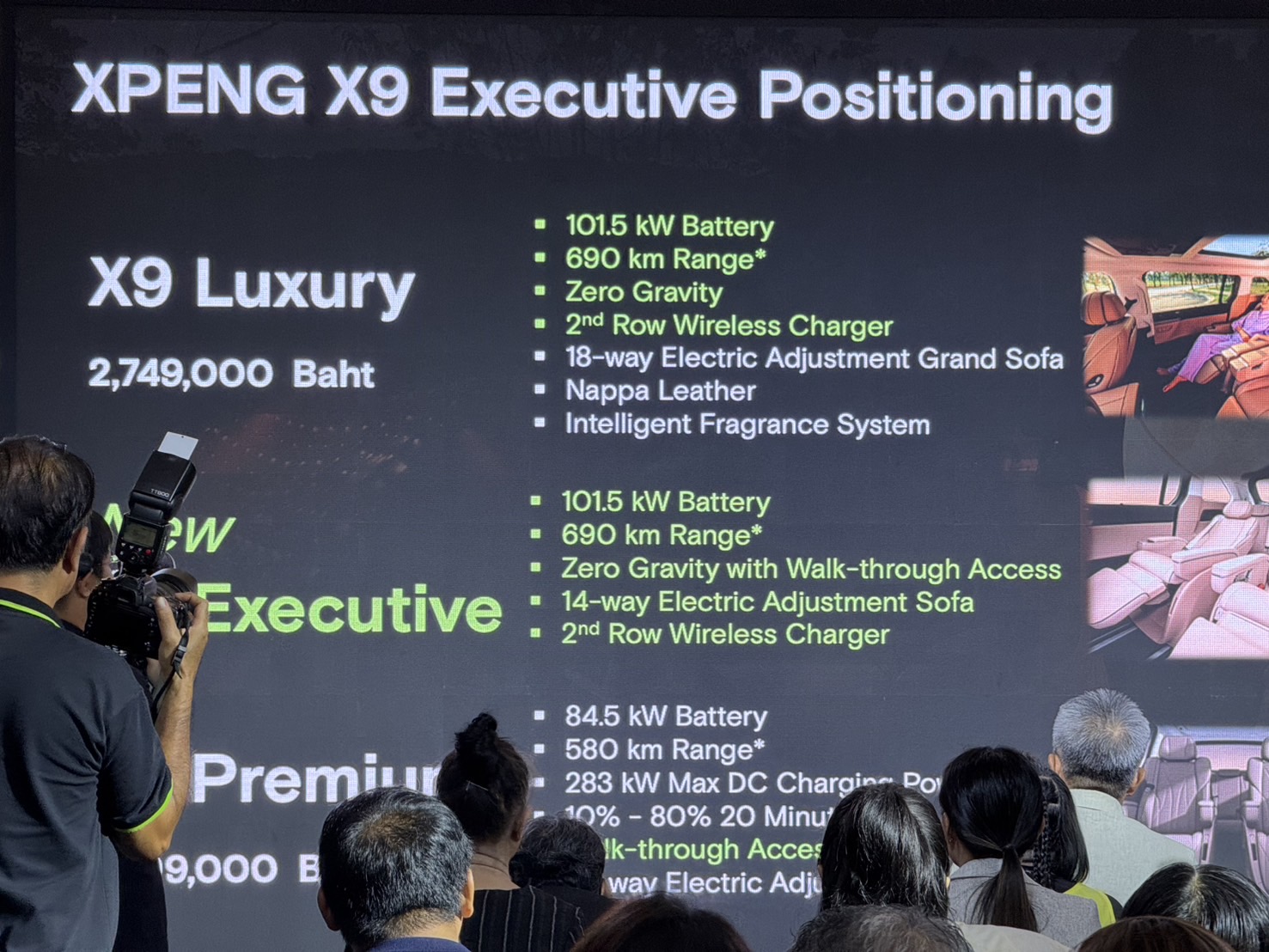 เอ็กซ์เผิง ประเทศไทย ผู้นำเข้าและจัดจำหน่ายยานยนต์ไฟฟ้าอัจฉริยะระดับพรีเมียม-ไฮเทค เอ็กซ์เผิง อย่างเป็นทางการ จัดงานเปิดตัว เอ็กซ์เผิง X9 ‘Executive’ รถตู้ไฟฟ้าทรงสปอร์ตอัจฉริยะ Ultra Smart Coupe MPV รุ่นล่าสุด มาพร้อมเบาะแถวที่สองแบบเฟิร์สคลาส ฟังก์ชัน Zero Gravity ซึ่งมอบความสบายผ่อนคลายสูงสุด พร้อมช่องทางเดินระหว่างเบาะแถวที่สอง (Walk-through Access) ผสานออปชันระดับพรีเมียมอย่างครบครัน ตอบโจทย์การใช้งานและความคุ้มค่าสูงสุด