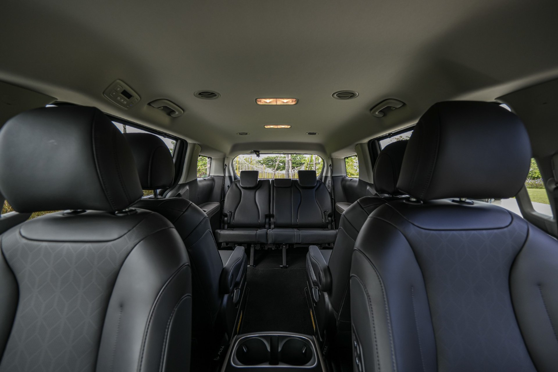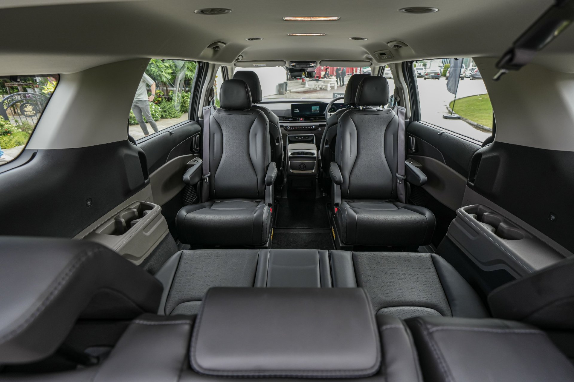 The new Kia Carnival HEV 7-seater ยังคงโดดเด่นในเรื่องความกว้างขวางสำหรับทั้งผู้โดยสารและสัมภาระ รวมถึงการปรับเปลี่ยนรูปแบบการจัดเรียงที่นั่งผู้โดยสารที่มีความยืดหยุ่น โดยถือเป็นรถ MPV ที่รองรับผู้โดยสารได้สูงสุด 7 ที่นั่ง พร้อมด้วยสัมภาระของทุกคนได้อย่างสะดวกสบายด้วยรถคันเดียว เบาะนั่งแถวสามมาพร้อมฟังก์ชันพับราบ ที่เป็นการสร้างพื้นที่บรรทุกแบบเรียบที่รวดเร็วและไม่ต้องใช้แรง ปรับเปลี่ยนได้ทันทีระหว่างความต้องการในการขนย้ายคนและขนส่งสินค้า