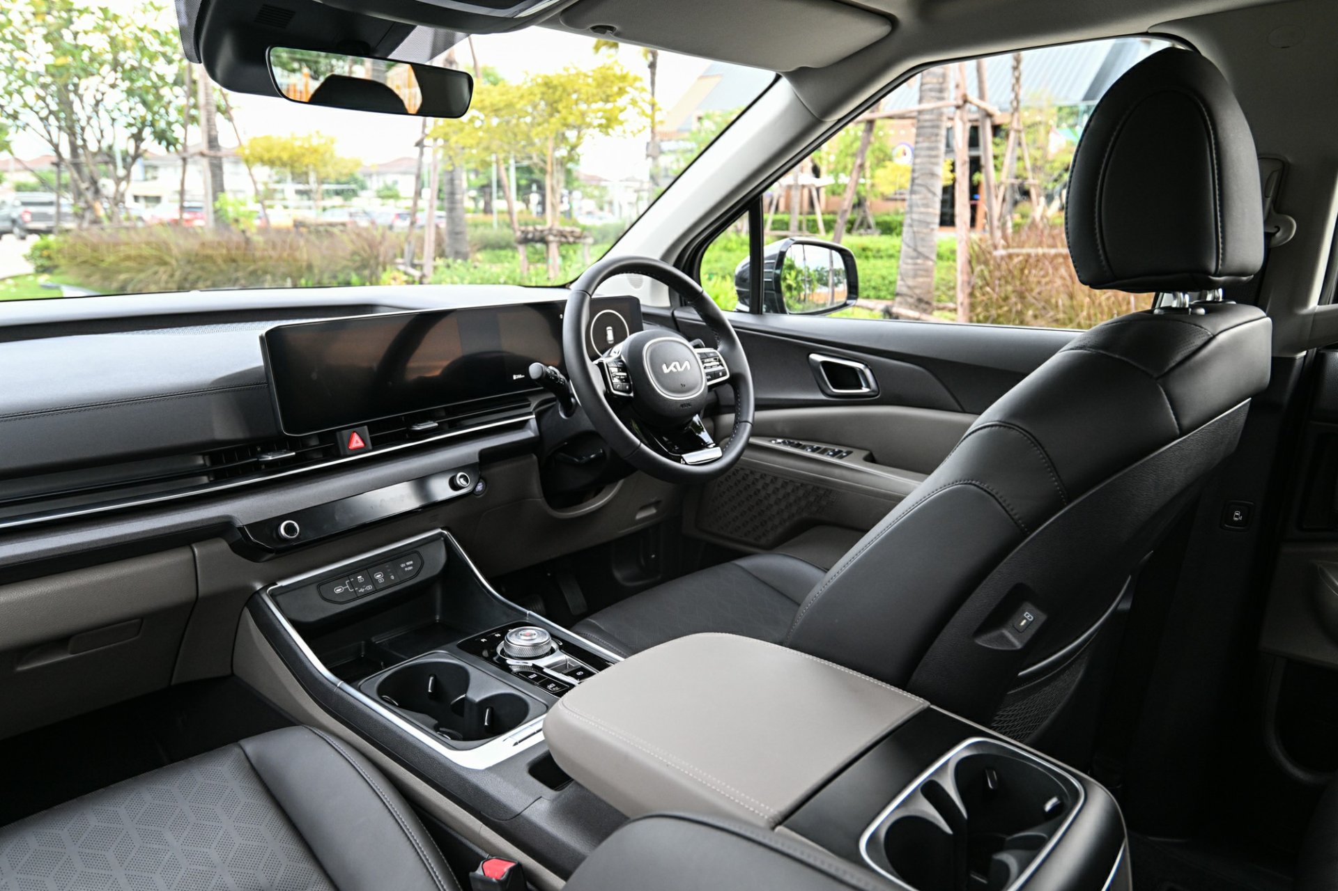 สำหรับเบาะที่นั่งของคนขับในรุ่น The new Kia Carnival HEV 7-seat Luxury ยังได้ติดตั้งระบบจดจำตำแหน่งเบาะนั่งและระบบ Welcome Seat สำหรับผู้ขับ เบาะนั่งคู่หน้าและเบาะนั่งแถวที่สองมาพร้อมระบบระบายอากาศและระบบอุ่นเบาะ สำหรับเบาะผู้โดยสารแถวสองเป็นแบบ Relaxation Seat ที่เปลี่ยนทุกการเดินทางให้เป็นความสะดวกสบายระดับเฟิร์สคลาสด้วยฟังก์ชันปรับเอนนอนที่สามารถปรับระดับได้เต็มรูปแบบ พร้อมเบาะรองขาแบบปรับไฟฟ้า มีโหมด One-touch Relaxation ที่สั่งงานด้วยการกดเพียงครั้งเดียวมอบความสบายให้กับผู้นั่งได้อย่างง่ายดาย สำหรับรุ่น The new Kia Carnival HEV 7-seat Premium เบาะนั่งแถวสองเป็นเบาะแบบ Captain Seats ที่สามารถถอดออกได้เพื่อเพิ่มความอเนกประสงค์ในการใช้งาน และยังสามารถปรับเปลี่ยนตำแหน่งให้เป็นแบบนั่งหันหน้าเข้าหากันได้ ให้สมาชิกในครอบครัวได้มีปฏิสัมพันธ์กันได้ตลอดทริป พร้อมกันนี้ The new Kia Carnival HEV 7-seater ทั้งสองรุ่นได้รับการปรับให้มีพื้นที่ทางเดิน (Walkthrough access) ที่เอื้อต่อการเข้า-ออกเบาะหลังได้สะดวกยิ่งขึ้นสำหรับสมาชิกครอบครัวทุกคน โดยเฉพาะเด็กและผู้สูงอายุ นอกจากนี้ ด้วยจุดยึดสําหรับติดตั้งเบาะนั่งสําหรับเด็ก (ISOFIX) ที่มีให้ในตำแหน่งที่นั่ง 4 ตำแหน่งเป็นมาตรฐาน (2 จุดบนเบาะนั่งแถวสอง และอีก 2 จุดบนเบาะแถวสาม) ซึ่งช่วยให้สามารถติดตั้งเบาะนั่งสำหรับเด็กในตำแหน่งต่าง ๆ ได้อย่างยืดหยุ่น เสริมความปลอดภัยและความสะดวกเพื่อตอบสนองความต้องการของครอบครัว