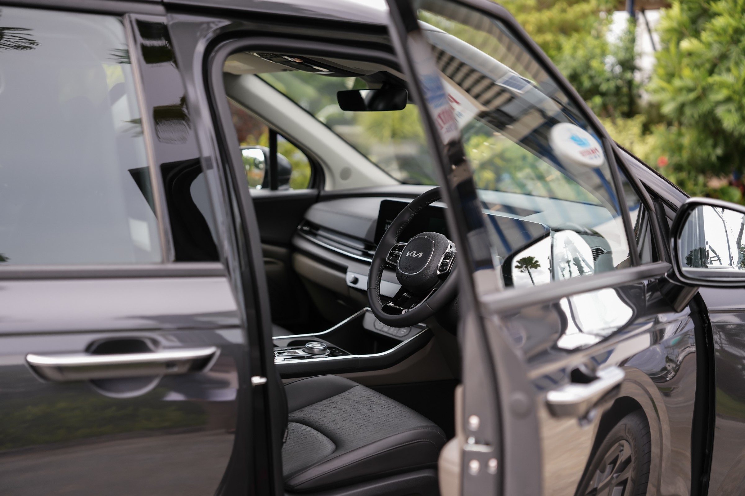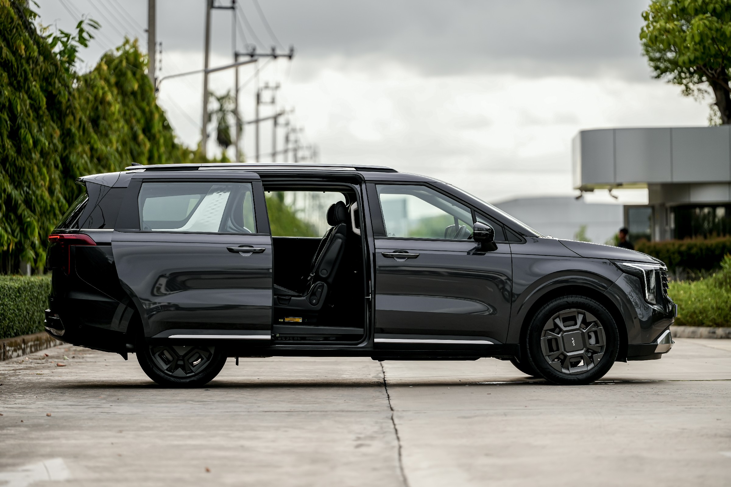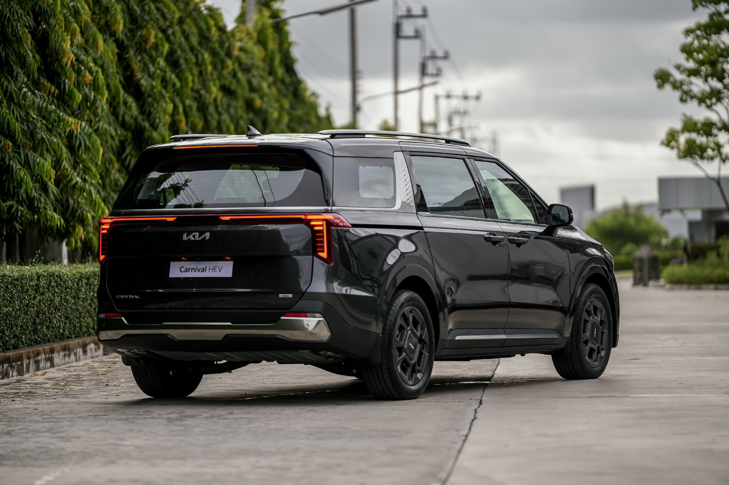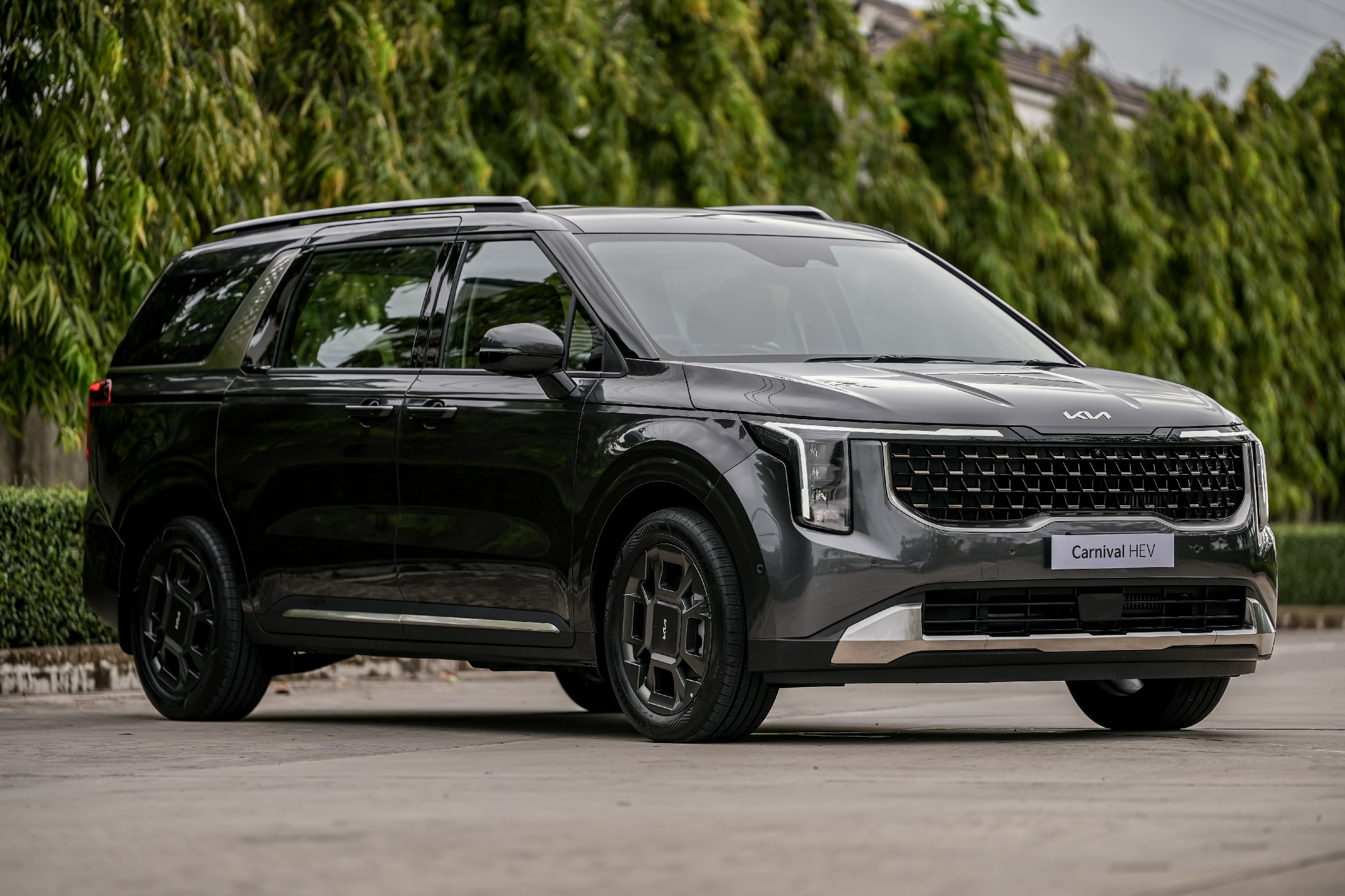 The new Kia Carnival HEV 7-seater จำหน่ายในประเทศไทย 2 รุ่นย่อย ได้แก่ The new Kia Carnival HEV 7-seat Luxury และ The new Kia Carnival HEV 7-seat Premium มาพร้อมกับดีไซน์ที่ได้รับการปรับโฉมใหม่ให้มีความโฉบเฉี่ยวยิ่งขึ้น โดดเด่นไม่ซ้ำใคร ทั้งด้านหน้าและด้านหลัง สะท้อนทั้งความหรูหราและความแข็งแกร่งในสไตล์ SUV มาพร้อมฟีเจอร์ต่าง ๆ ที่น่าสนใจ อาทิ กระจังหน้าแบบ ‘Tiger nose’ โคมไฟหน้าพร้อมไฟส่องสว่างแบบ LED ดีไซน์ดวงไฟทรงลูกบาศก์ ชุดไฟหน้าและไฟท้ายแบบ Star Map Lighting ดีไซน์อันเป็นเอกลักษณ์เฉพาะของเกีย และล้ออัลลอยดีไซน์ใหม่ ขนาด 19 นิ้ว นอกจากนี้ ยังมาพร้อมกับแร็คหลังคาที่ไม่เพียงช่วยเสริมลุคความแข็งแกร่งแบบ SUV แต่ยังเป็นการเพิ่มความอเนกประสงค์ให้กับการใช้งานจริง (แร็คหลังคาสามารถรองรับน้ำหนักสูงสุดได้ถึง 100 กิโลกรัม) ช่วยปลดล็อกขีดจำกัดให้การเดินทางไปทำกิจกรรมต่าง ๆ ร่วมกันของครอบครัวให้สะดวกสบายกว่าที่เคย The new Kia Carnival HEV 7-seater มาพร้อมประตูสไลด์ไฟฟ้า (Smart Power Sliding Door) และฝากระโปรงท้ายไฟฟ้าอัจฉริยะ (Smart Power Tailgate) ที่ให้ความสะดวกสบายในการใช้งาน ด้วยระบบเปิด-ปิดอัตโนมัติเมื่อเข้าใกล้ตัวรถโดยที่มีกุญแจ Smart Key อยู่ด้วย สำหรับในรุ่น The new Kia Carnival HEV 7-seat Luxury จะมี Dual Sunroof ที่ให้แสงธรรมชาติส่องเข้ามาช่วยเพิ่มความรู้สึกโปร่งสบายให้กับห้องโดยสาร สำหรับตัวเลือกสีภายนอกของ The new Kia Carnival HEV 7-seater มีให้เลือกทั้งหมด 4 สี ได้แก่ สีขาว Snowflake White Pearl สีเทา Meteor Grey สีดำ Jet Black และสีน้ำเงิน Astra Blue