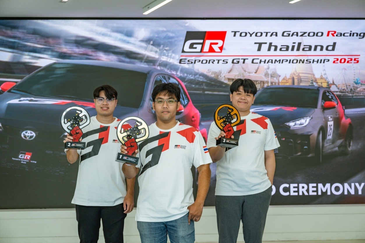 บริษัท โตโยต้า มอเตอร์ ประเทศไทย จำกัด ขอแสดงความยินดีกับ “ธนภัทร พวงพัฒน์ – ไชยภัทร ลิปิกรโกศล – ไหมจักรี อารีกิจเสรี” 3 นักแข่งอีสปอร์ตชาวไทย ผู้คว้าชัยรอบคัดเลือกระดับประเทศ ในการแข่งขัน TOYOTA GAZOO RACING THAILAND ESPORT GT CHAMPIONSHIP 2025 บนเกม Gran Turismo 7 เมื่อวันที่ 24 กันยายน 2568 พร้อมสิทธิ์ตัวแทนประเทศไทยเข้าร่วมชิงแชมป์ระดับเอเชีย รายการ TOYOTA GAZOO RACING ASIA ESPORT GT CHAMPIONSHIP 2025 ที่จะจัดขึ้น ณ Toyota Alive บางนา ระหว่างวันที่ 22 – 23 พฤศจิกายน 2568