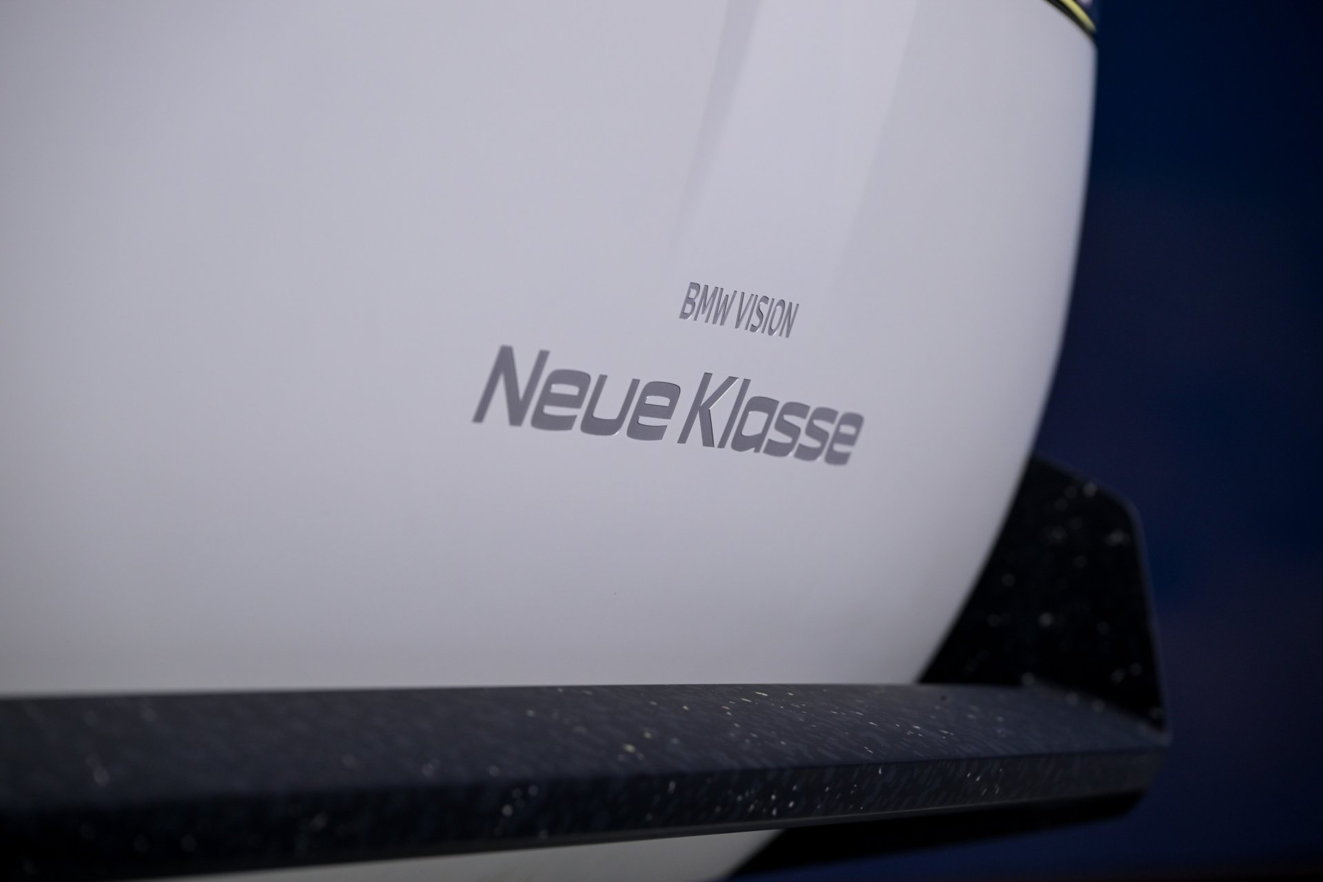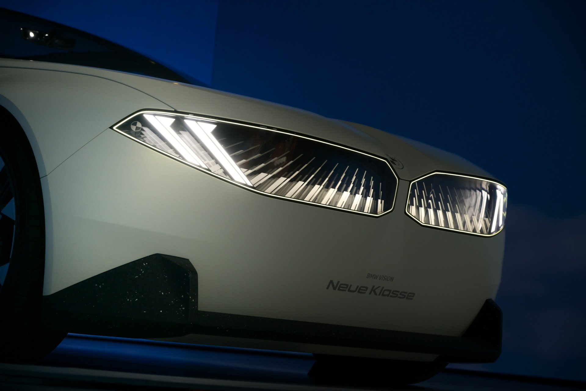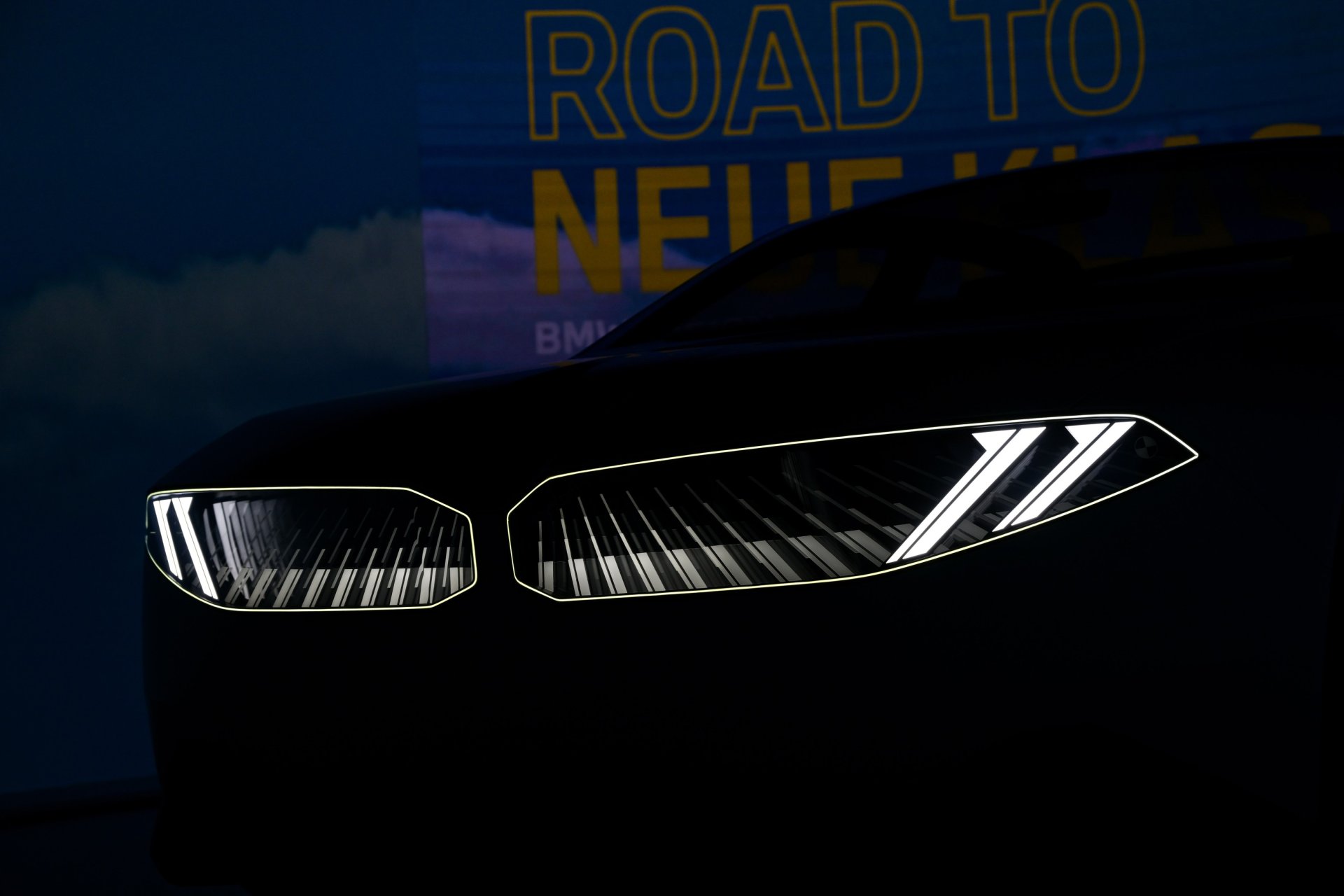 ด้านหน้าของ Vision Neue Klasse สดใหม่ด้วยการนำเอกลักษณ์ของบีเอ็มดับเบิลยูอย่างกระจังหน้าทรงไตคู่ มาตีความด้วยมุมมองที่แตกต่าง โดยกระจังหน้าดีไซน์ใหม่ถูกหลอมรวมเป็นชิ้นเดียวกับไฟหน้า ซึ่งประกอบไปด้วยไฟดวงเล็กจำนวนมาก โดยแต่ละดวงสามารถตั้งค่าการส่องสว่างได้แยกจากกัน ติดตั้งอยู่ใต้ผิวหน้าที่เป็นกระจกให้เกิดเป็นดีไซน์ที่จับทุกสายตาด้วยความลึกจากชิ้นส่วนที่เล่นระดับ ส่วนไฟส่องสว่างในเวลากลางวัน (Daytime Running Lights) มาในรูปแถบไฟเฉียงบริเวณด้านข้าง ทำมุมตัดกับชุดไฟหน้าหลัก แนวคิดการออกแบบชุดไฟหน้านี้ยังถูกนำไปปรับใช้กับไฟท้าย ซึ่งประกอบขึ้นจากชิ้นส่วนที่ผลิตจากการพิมพ์แบบสามมิติ เพื่อสร้างรูปลักษณ์ที่มีมิติและความลึกในลักษณะเดียวกัน