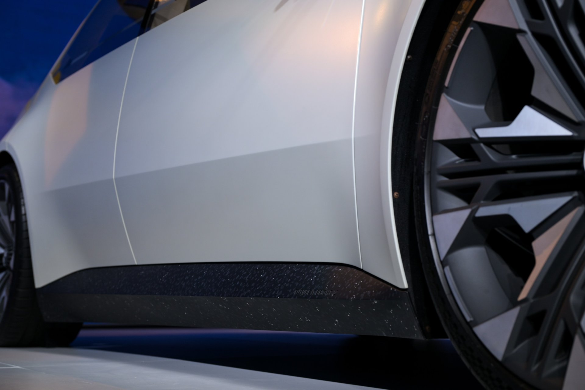 รูปลักษณ์ที่สะดุดตาของบีเอ็มดับเบิลยู Vision Neue Klasse นับเป็นการเปิดตัวแนวทางการออกแบบใหม่ของบีเอ็มดับเบิลยู ด้วยงานออกแบบที่สื่อถึงความสปอร์ตและปราดเปรียว ควบคู่ไปกับความนุ่มนวลที่สง่างาม บรรยากาศที่โปร่งสบายของตัวรถถูกขับเน้นขึ้นไปอีกด้วยสีตัวถัง Joyous Bright ซึ่งเป็นสีขาวสว่าง แต่งประกายโทนเหลืองอ่อนๆ ตัดกับโทนสีเข้มของชิ้นส่วนตกแต่งที่ทำจากวัสดุผสมลายหินอ่อน (Composite Marble) ด้านข้างตัวรถ มีเส้นสายทอดตามแนวยาวเพียงเส้นเดียว ช่วยดึงสายตาให้สังเกตเห็นจุดศูนย์ถ่วงของตัวรถที่อยู่ในระดับต่ำ เสริมความปราดเปรียวในการขับขี่ไปอีกขั้น ขณะที่ซุ้มล้อกว้างช่วยเสริมความโดดเด่นบนท้องถนน และสื่อถึงพละกำลังเต็มพิกัดจากระบบการขับขี่พลังงานไฟฟ้าแบบขับเคลื่อนสี่ล้อ