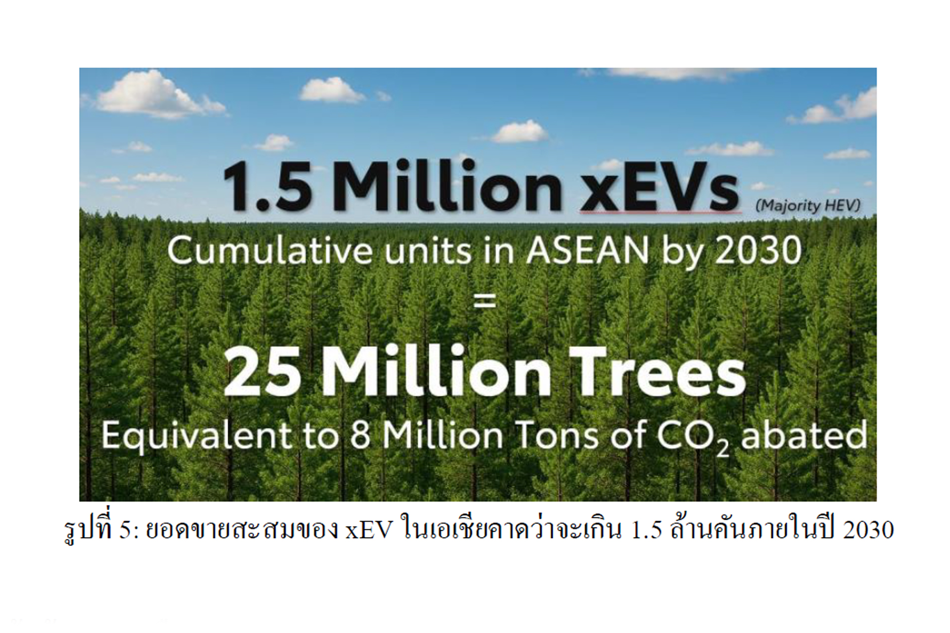 นอกจากนี้โตโยต้ายังยึดโยงพันธกิจ “30 by 30 Mission” ที่ตั้งเป้ายอดขาย xEV ให้ได้ 30% ภายในปี 2030 ในภูมิภาคอาเซียน ภายใต้กลยุทธ์ Multi-Pathway โดยคาดว่ายอดขายสะสมของ xEV จะทะลุ 1.5 ล้านคัน ซึ่งเปรียบได้กับการปลูกต้นไม้ 25 ล้านต้น หรือลดการปล่อยก๊าซคาร์บอนไดออกไซด์ได้ราว 8 ล้านตัน
