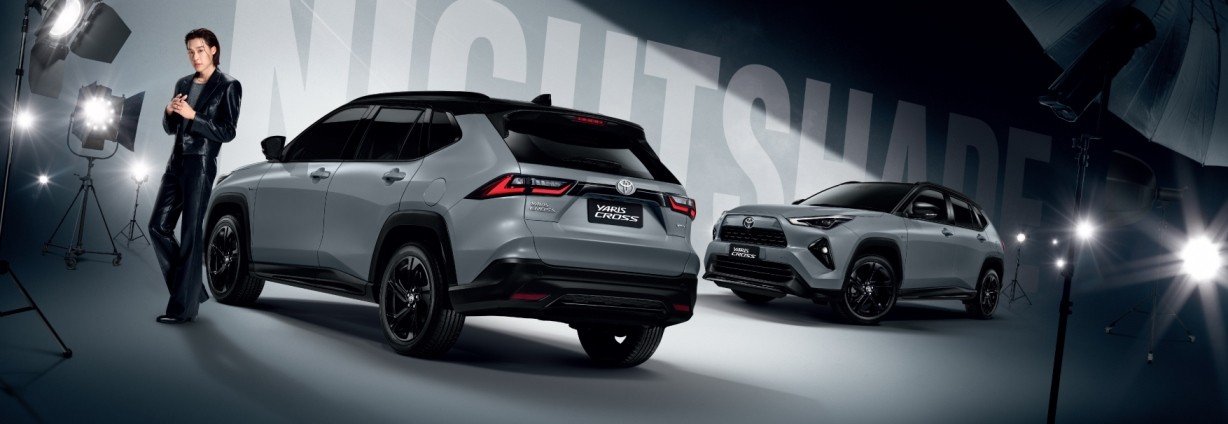 ดีไซน์ภายนอกของรุ่น Nightshade ถูกอัปเกรดให้เข้มขึ้นรอบคัน ไม่ว่าจะเป็นกระจังหน้า Metro Stylish ใหม่ ล้ออัลลอยปัดเงาสีดำ 18 นิ้ว กระจกมองข้างสีดำ ชุดตกแต่งกันชนหน้า–หลังและด้านข้างแบบดำทั้งหมด รวมถึงกรอบไฟตัดหมอก คิ้วกระโปรงท้าย และคิ้วขอบหน้าต่างรมดำ ทุกอย่างทำให้บุคลิกของรถดูแน่นขึ้น ดุดันขึ้น แต่ยังดูหรูแบบพรีเมียมตามสไตล์ Yaris Cross รุ่นบน