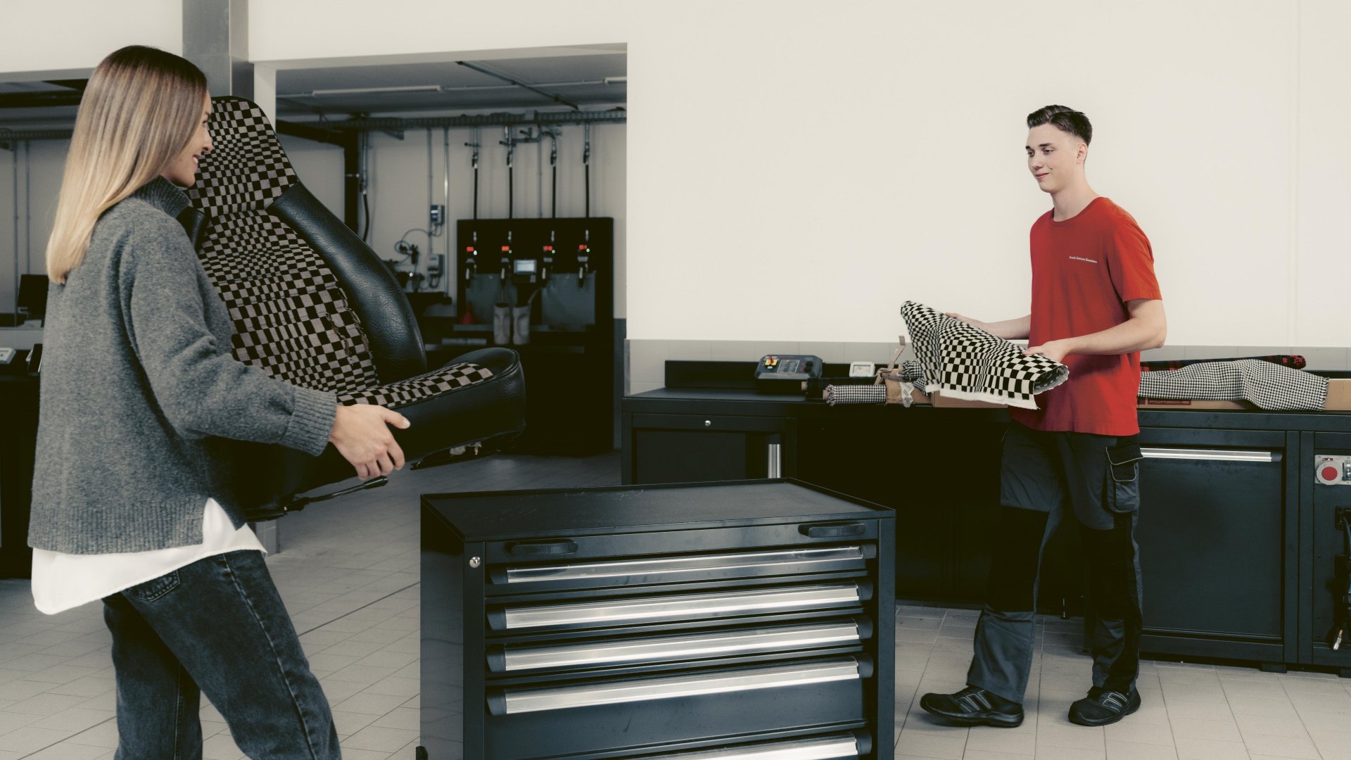 ทีม Porsche Classic ย้ำว่าแม้บางครั้งจะเปลี่ยนแค่เบาะคนขับ เบาะผู้โดยสารก็ยังต้องลายเหมือนเดิมเป๊ะ เพราะฉะนั้นผ้าใหม่ต้องแมตช์กับของเดิมได้แบบไร้ที่ติ ทุกลายต้องผ่านการทดสอบไฟ การซีดแดด การเสียดสี และคุณภาพระดับ Porsche ก่อนจะปล่อยออกสู่ตลาด วัสดุหนึ่งแผ่นมีขนาด 1.5 x 2 เมตร ใช้ได้ทั้งบุเบาะและแผงข้างประตู
