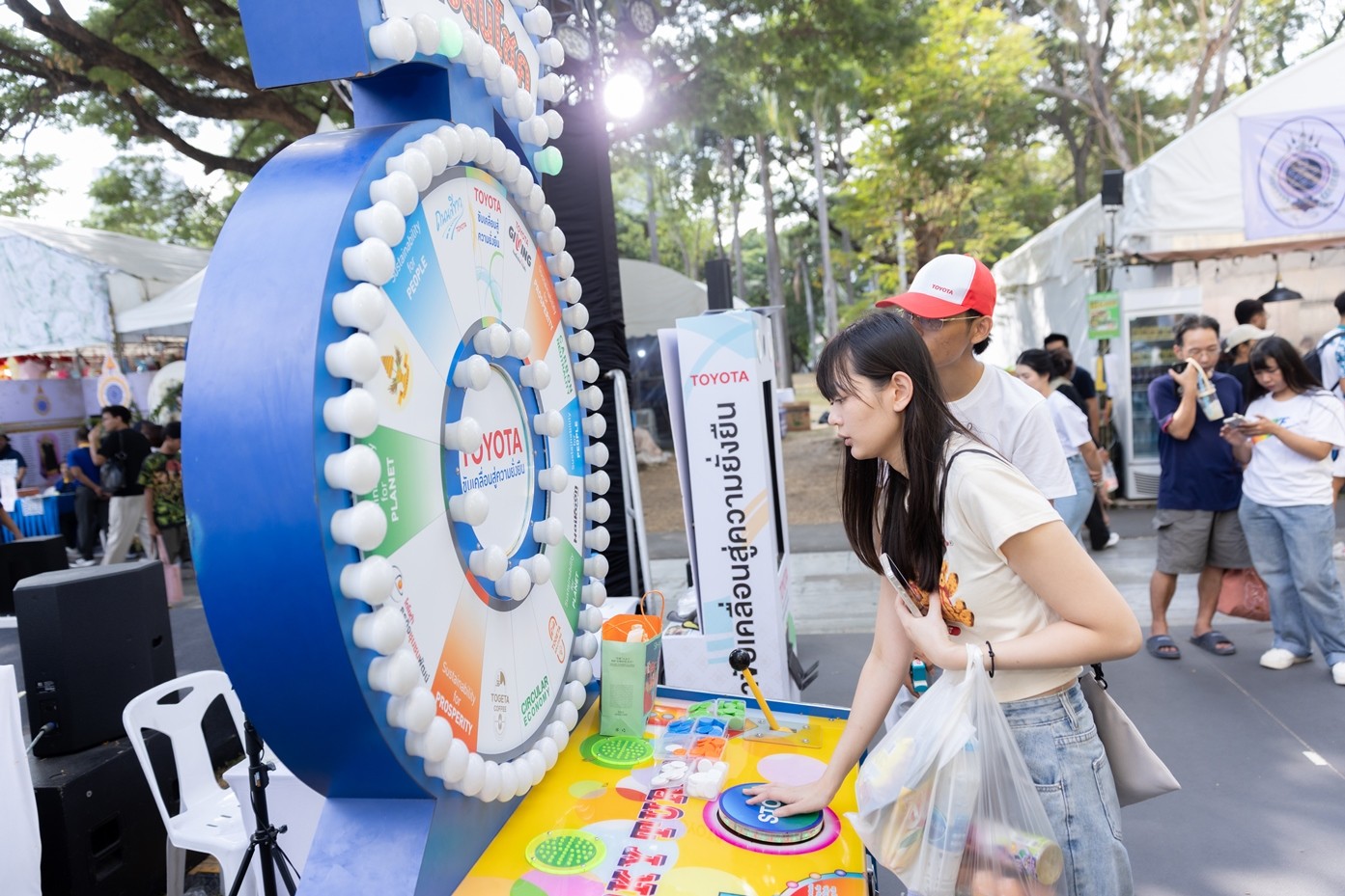 ภายในบูธมีการนำเสนอแนวคิดสร้างสังคมการใช้รถใช้ถนนอย่างปลอดภัย ผ่านโครงการโตโยต้าถนนสีขาว และการแบ่งปันคืนสู่สังคมผ่าน Toyota Giving ควบคู่กับการมุ่งสู่ความเป็นกลางทางคาร์บอน เศรษฐกิจหมุนเวียน และการดูแลธรรมชาติอย่างยั่งยืน นอกจากนี้ยังสะท้อนภารกิจยกระดับเศรษฐกิจฐานราก ผ่านโครงการธุรกิจชุมชนพัฒน์ Togeta Solutions และ Haikoon ที่ช่วยเพิ่มโอกาสให้ผู้ประกอบการและเกษตรกรไทยเติบโตอย่างมั่นคง