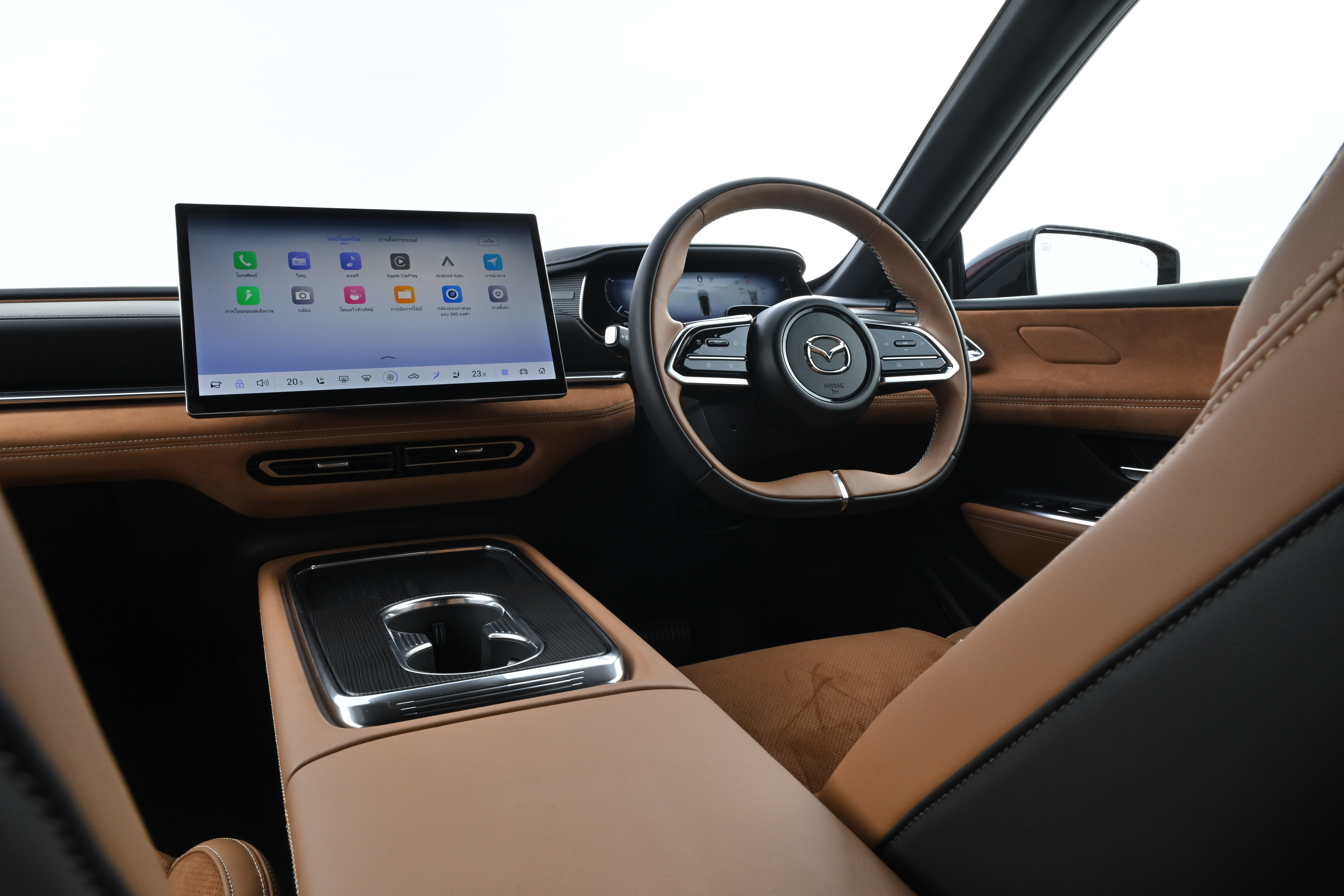 ด้านสมรรถนะการขับขี่ Mazda6e รุ่นนี้พกความแรงมาถึง 258 แรงม้า แรงบิดสูงสุด 290 นิวตันเมตร ทำอัตราเร่ง 0-100 กม./ชม. ได้ในเวลาต่ำกว่า 8 วินาที พร้อมความคล่องตัวจากการกระจายน้ำหนักหน้า-หลังแบบ 50:50 และจุดศูนย์ถ่วงต่ำที่ช่วยให้เข้าโค้งได้อย่างแม่นยำและมั่นคง โดยใช้แบตเตอรี่ลิเธียมไอออนขนาด 77.9 kWh ที่วิ่งได้ไกลสูงสุดถึง 654 กิโลเมตรต่อการชาร์จหนึ่งครั้ง (มาตรฐาน NEDC) และยังรองรับการชาร์จไว DC Fast Charging จาก 30% - 80% ได้ในเวลาเพียง 15 นาทีเท่านั้น