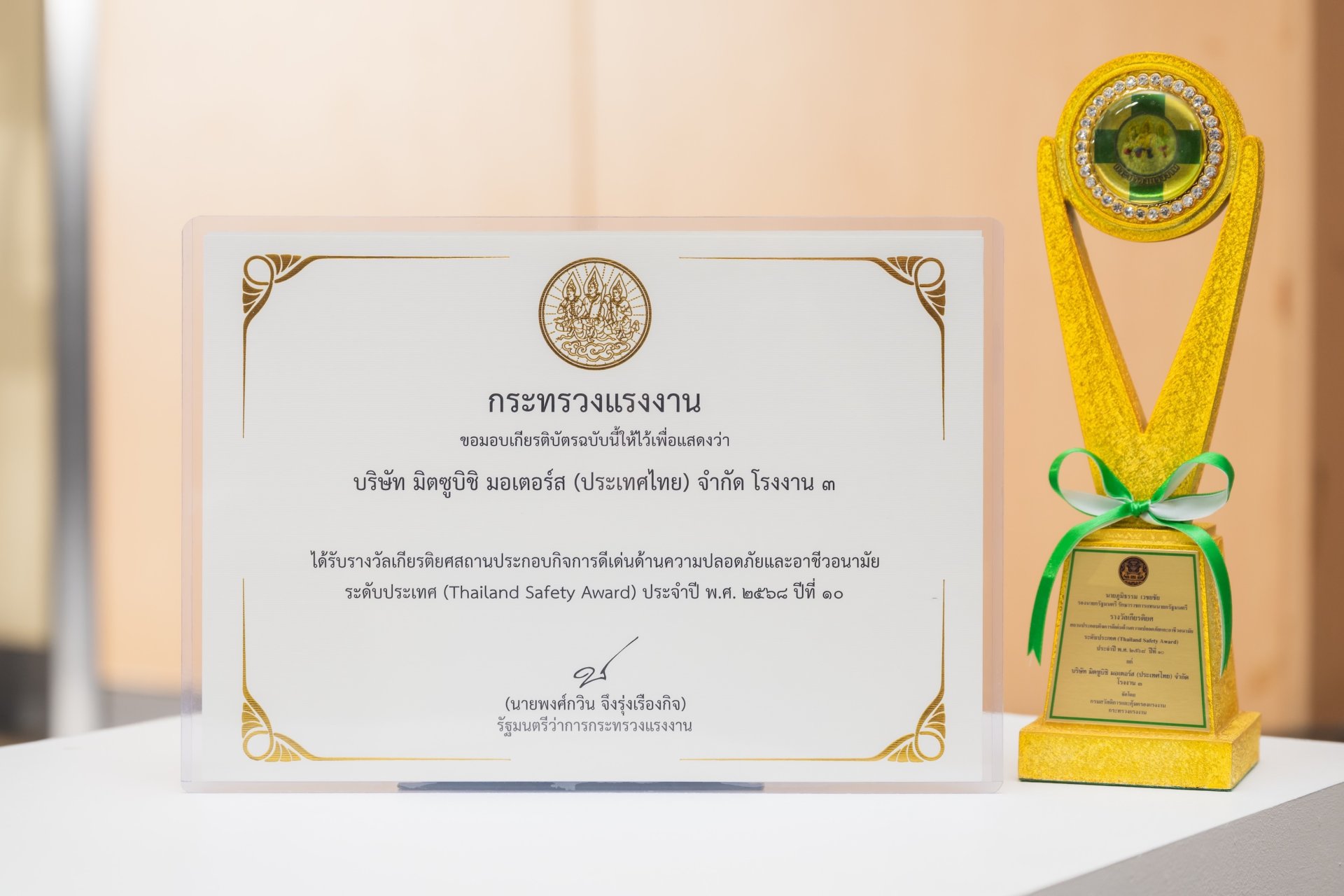 มิตซูบิชิ มอเตอร์ส ประเทศไทย และ เอ็มเอ็มทีเอช เอ็นจิ้น ประกาศศักดาผู้นำด้านมาตรฐานความปลอดภัย กวาดรางวัลใหญ่ปี 2568 มาครองถึง 7 รางวัล ประกอบด้วยรางวัลสถานประกอบกิจการดีเด่นด้านความปลอดภัยอาชีวอนามัยระดับประเทศ (Thailand Safety Award) 5 รางวัล จากกรมสวัสดิการและคุ้มครองแรงงาน และรางวัลระดับแพลตินัมด้านการส่งเสริมความปลอดภัยทางถนน (TAIA-AIC Traffic Safety Awards 2025) อีก 2 รางวัล ซึ่งสะท้อนถึงการบริหารจัดการที่เข้มงวดในทุกขั้นตอนการผลิตและการใส่ใจสวัสดิภาพของพนักงานอย่างแท้จริง